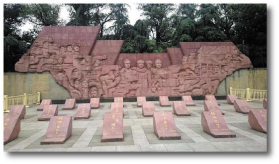 1949年12月7日成都解放前夕,国民党将关押在成都将军衙门内的36位共产党员进步人士和爱国青年、学生杀害于通惠门外十二桥附近。1950年1月建烈士陵园。图为位于成都市西门外文化宫内、二仙庵侧的十二桥烈士墓。(图片来自:四川省庆祝中国共产党成立100周年主题展览)