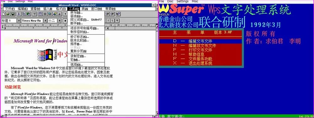 ▲1992年微软Word与WPS软件界面对比,可以直观感受到用户体验的差别此时金山已是危机四伏。而另一个关键决策的失误,更是将金山推至岌岌可危的境地——金山自1993年起调动全部资源投入研发的Windows版办公软件“盘古组件”,在市场上输得惨烈,远低于预期的销量表现也令团队士气大伤。