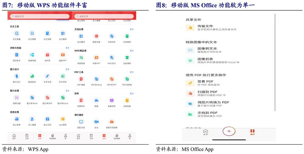 ▲移动版WPS与移动版微软Office功能组件对比(来源:开源证券)为了保证移动端的领先性,金山WPS的程序员们,逼着自己将版本迭代频率进一步提升。金山办公高级总监黄嘉宁回忆道,PC版WPS以月为单位更新,移动版WPS更是做到每周更新一个版本,来补充功能或修复问题。