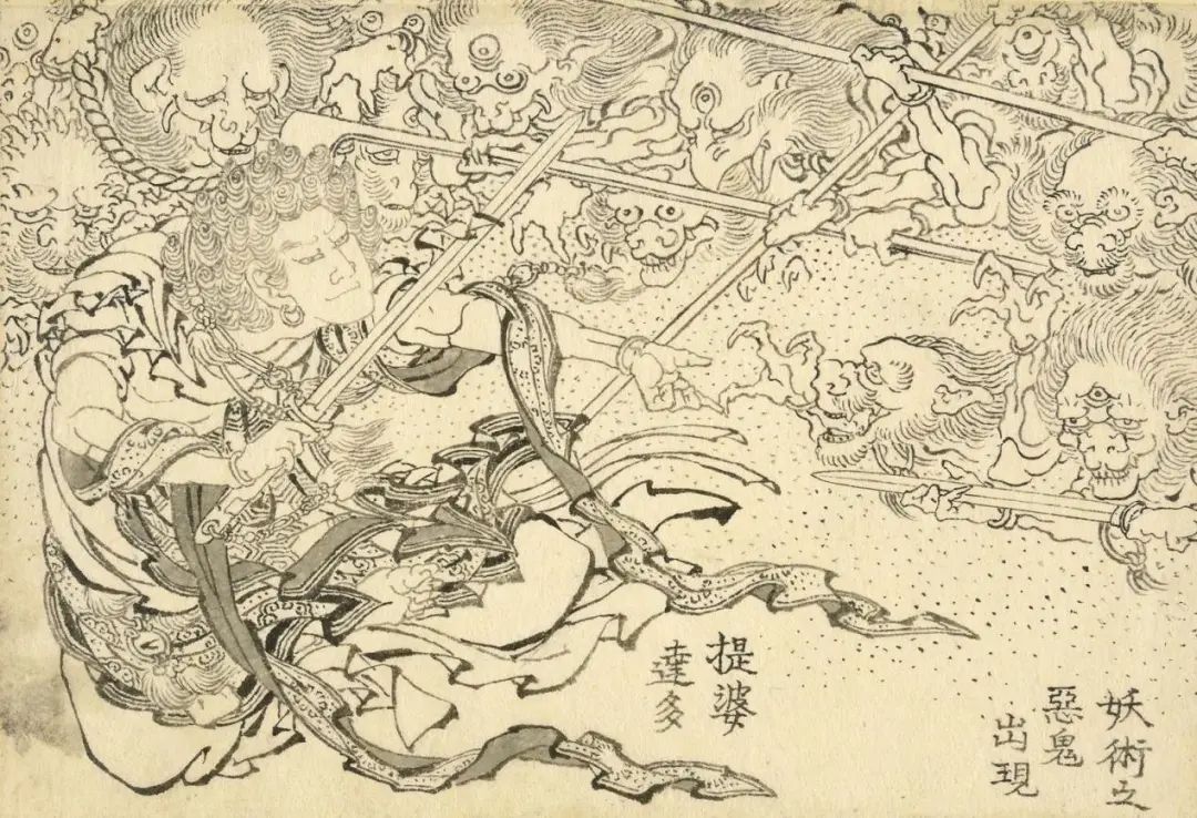 在中元节当天,大英博物馆官方微博应景晒出了一张画稿,内容描绘的是佛教中的神明提婆达多斩除恶鬼的场景。