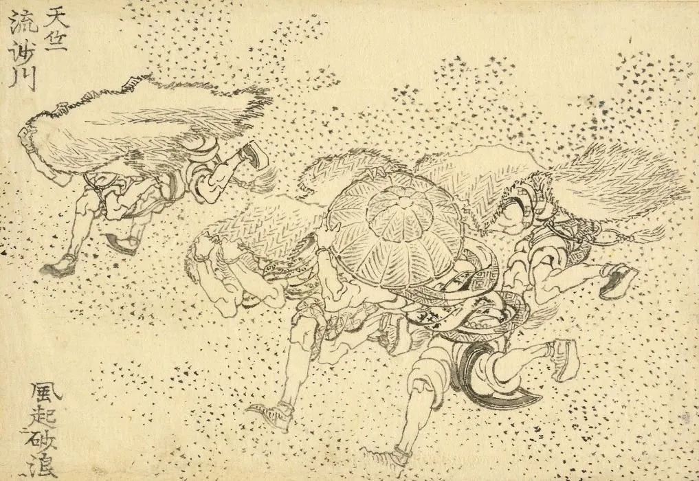 当时葛饰北斋已年届七旬。他在绘画这批素描画时,正经历着人生低谷。不但自己患上轻微中风,还要面对第二任妻子离世的恶耗,还因为帮助孙儿偿还赌债而面临赤贫。