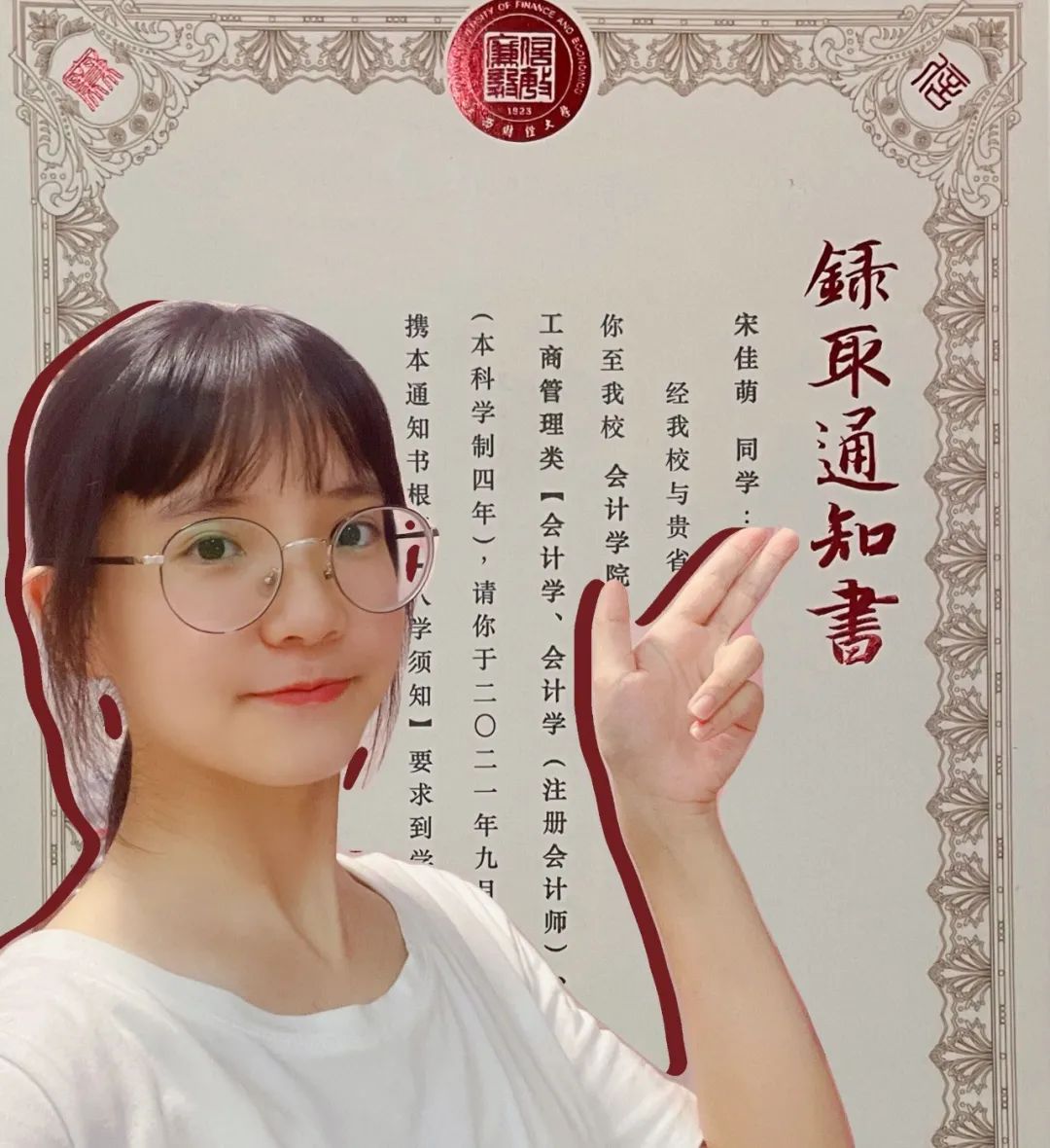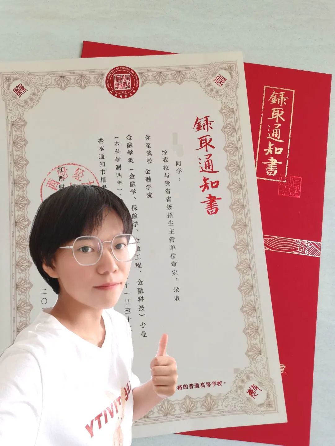最后我如愿被江财录取了,江财的录取通知书也仿佛明白我的心意,赫然印着,“选择江财,选择未来”。我的未来,是自己选的,会认真地负责到底。江财,我终于可以拥抱你了!
