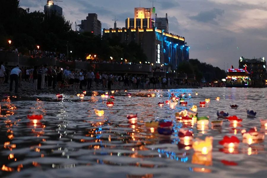 2015年8月26日,兰州解放纪念日,兰州市民在黄河边投放河灯。图|视觉中国【注:①扶郿战役为1949年7月中旬,第一野战军在彭德怀指挥下,对陕西省扶风、郿县地区国民党军发动的进攻作战。该战役历时4天,共歼敌4万余人,解放了陕中广大地区。