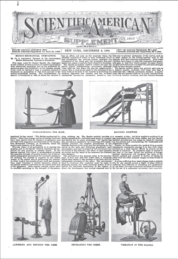 该文章的标题是“促进健康的奇妙”。詹德的发明正值医学发现同机械化交相辉映的时代,机器有着文化和技术价值,也恰逢职场白领以及同类静坐式工作方式的崛起。