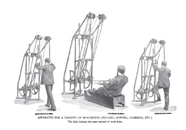 詹德推荐他的机器,称其为“对抗静坐式生活和隔绝的办公室两大恶魔的预防措施”。同时他也直接及间接地称其为奢侈体验,由于其昂贵和稀缺,仅为社会的精英人士所享有。机械化的锻炼第一次将锻炼和劳动分隔开。