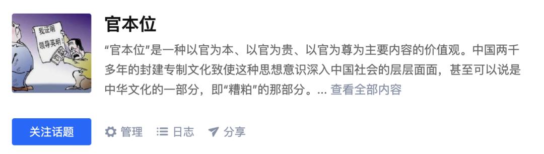 知乎有一个热门话题“官本位”,其中这样介绍这个中国人从小到大都耳熟能详的名词,