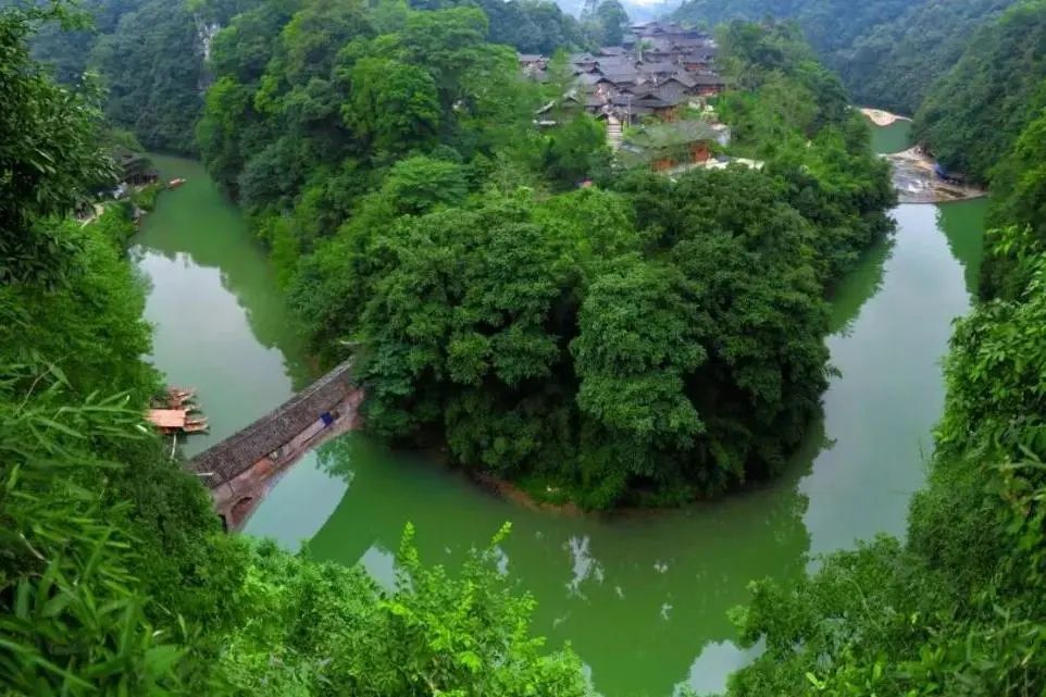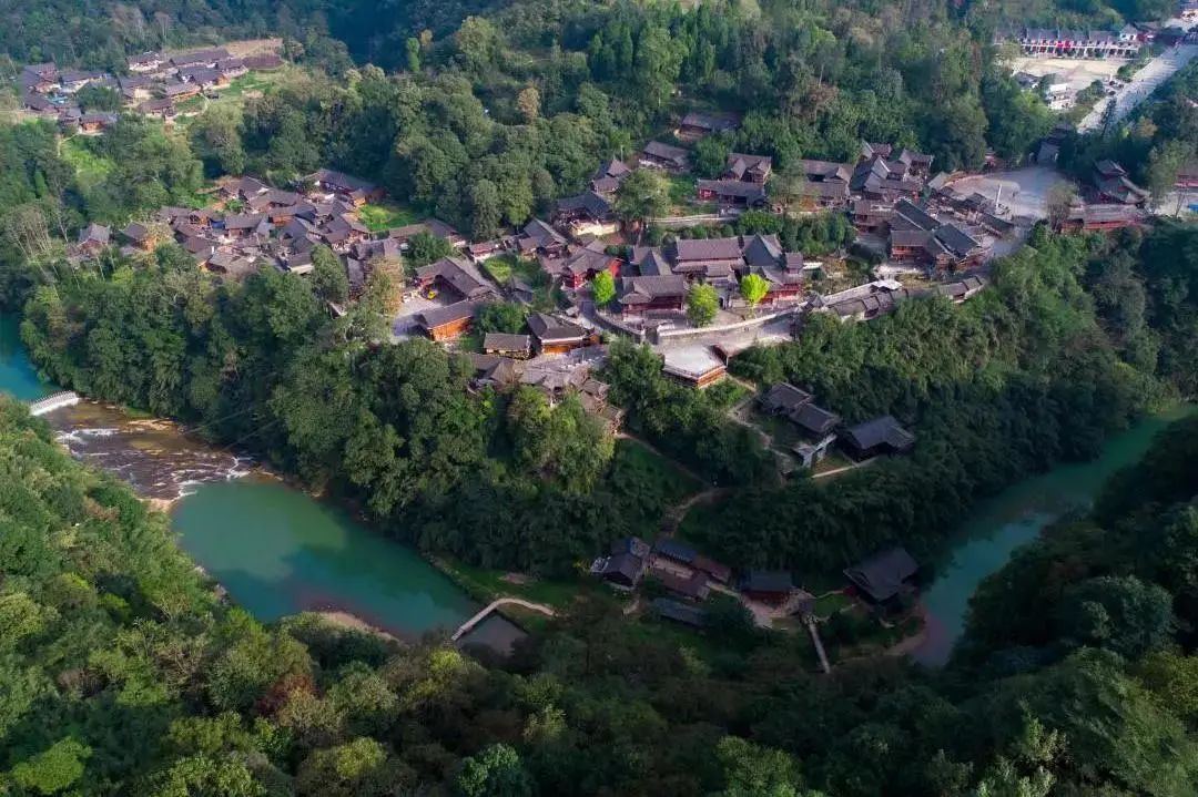 夏末的响水洞村一片翠绿,阳光透过层层叠叠的枝叶显现出一道道美妙的光影,瀑布从山顶飞泻而下,之后流进了山下古色古香的村寨中。