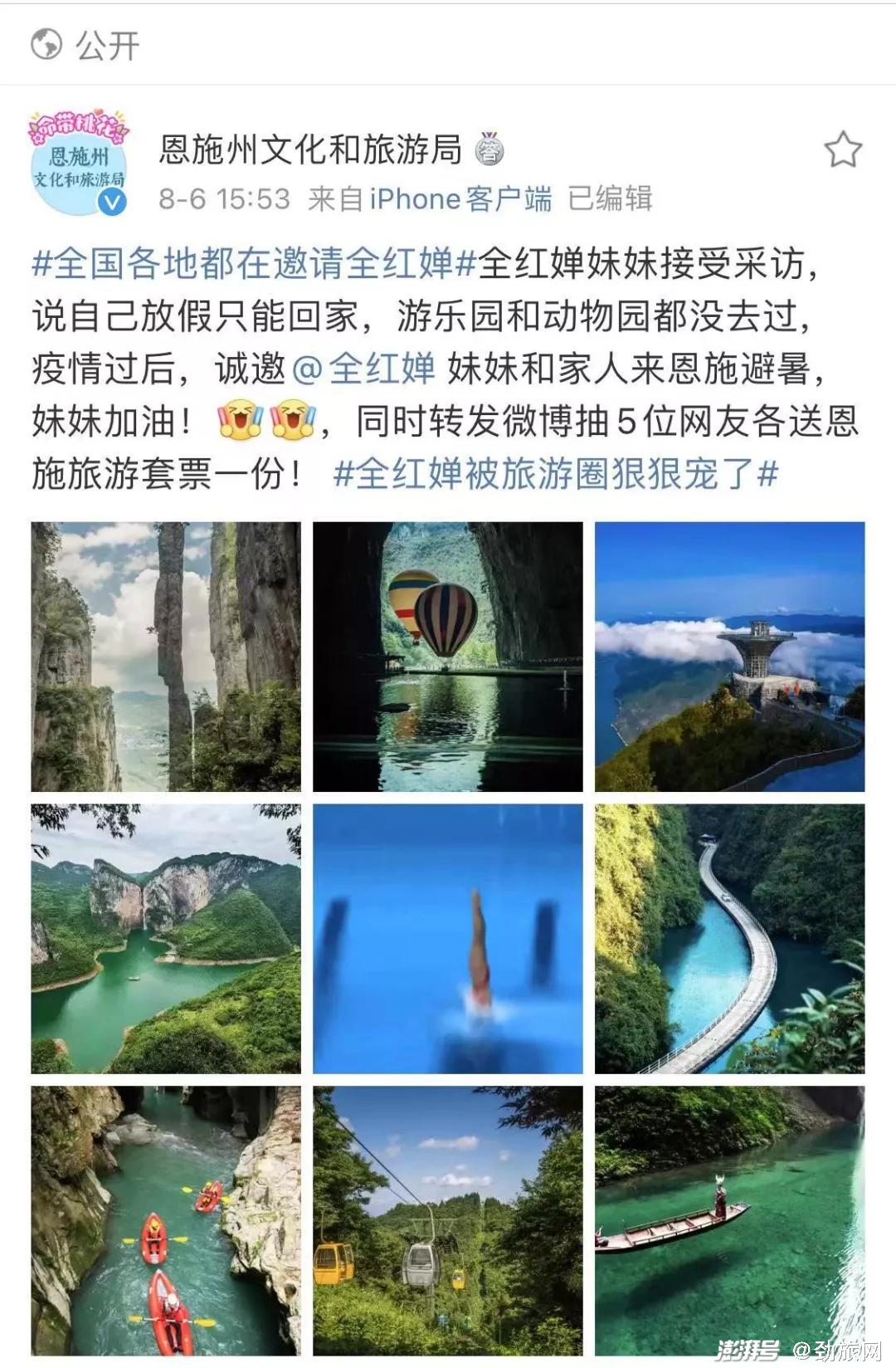 8月6日,15:53分,@恩施州文化和旅游局 发布邀请全红婵的微博: