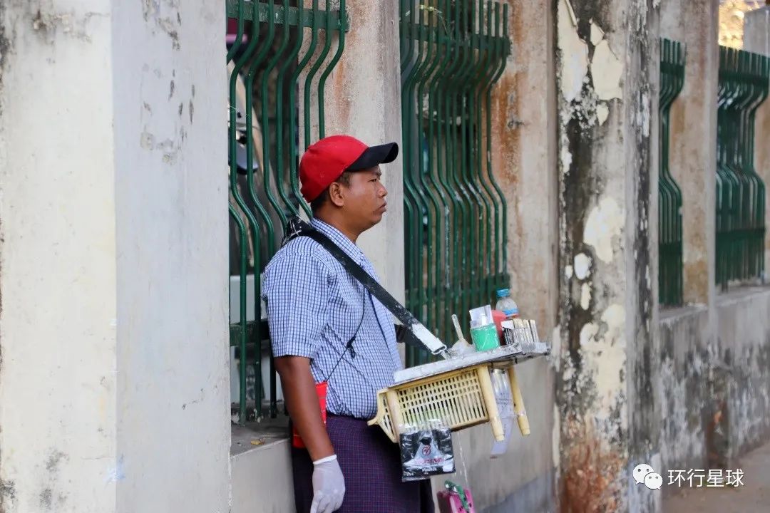 我转身就走,也不顾他是否尴尬,我走向另一个穿筒裙的男人,还未走近,就看见从那男人嘴里飞出来一口,哦,不是痰,而是一口混合着某种渣渣的红色血水。我震惊之余,找个台阶坐下来,平息了一下情绪,观察了一会儿,才慢慢发现一个现象,那些在街上走动的穿筒裙的缅甸男人,比如车夫、小摊主、杂货店老板等人,只要一张嘴,几乎个个都是满嘴鲜血,那景象十分可怖,而且他们都有一口糟烂的牙齿。