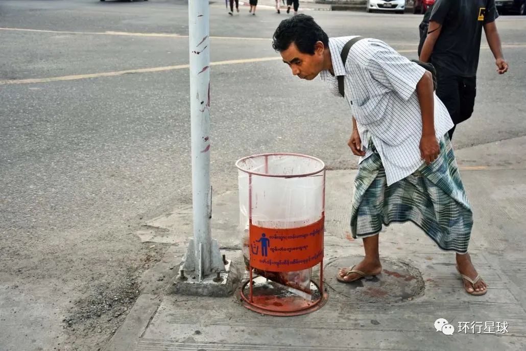 缅甸槟榔嚼到最后,是要把渣滓吐出来的,于是在缅甸街头,到处都能见到吐在地上的红色污迹。树底下、草丛里、墙根处、马路边,随处可见,让当地的街头环境变得十分糟糕,不但影响市容的美观,还容易滋生细菌。缅甸政府为此十分苦恼,曾多次治理"槟榔渣"现象,呼吁民众不要随地吐槟榔渣,并且还在街道上摆放收集盒,用来收纳被乱吐的槟榔渣。