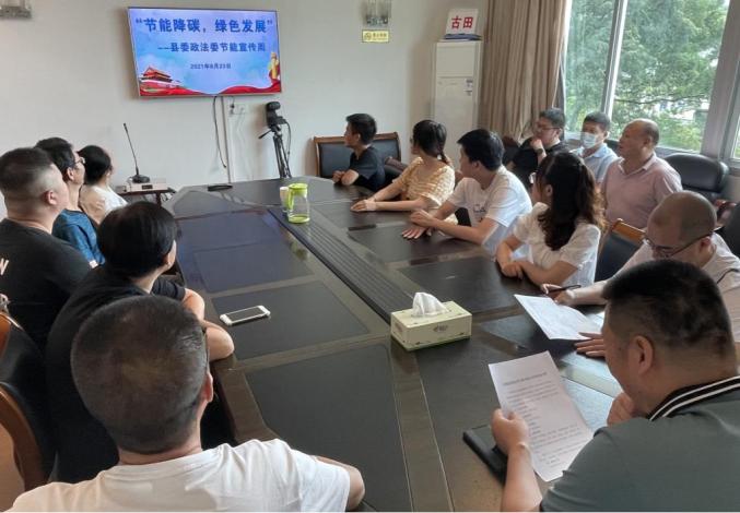 为贯彻落实节约资源基本国策,提高群众节能意识。古田县各单位在做好常态化疫情防控的同时,积极围绕“节能降碳,绿色发展”主题组织开展节能宣传周活动。古田县委政法委