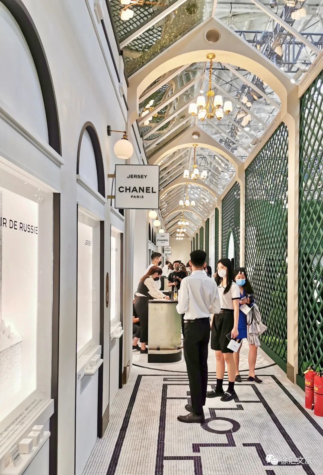 穿过香奈儿5号香水瓶形状的光影长廊,清新优雅的法式花园映入眼帘,这是一处让人沉醉的香水奇境。