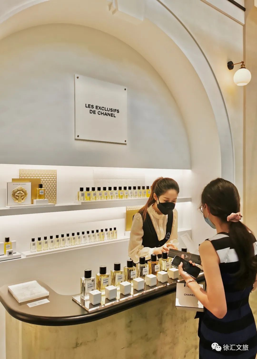 珍藏系列香水展厅,被设计成巴黎廊街的形态。一个个流光溢彩的橱窗,向你呈现着18款香奈儿珍藏系列香水。