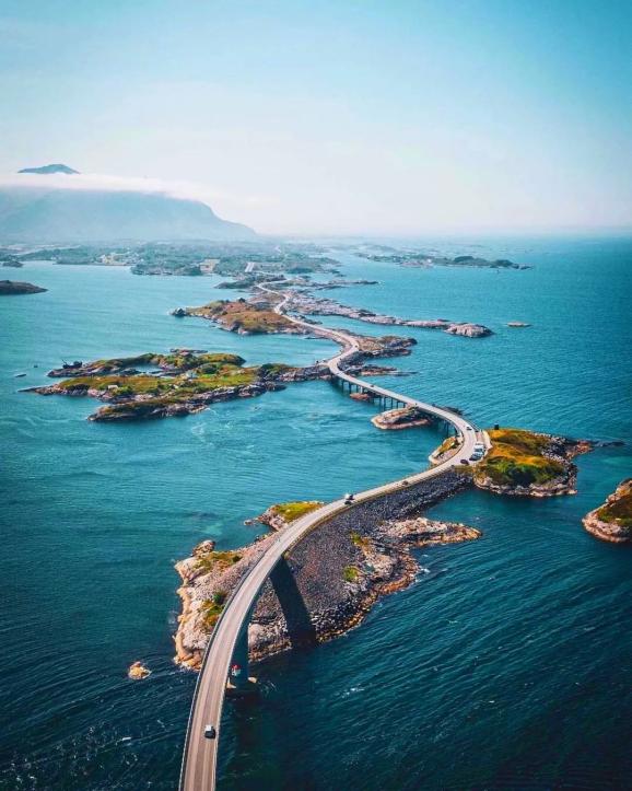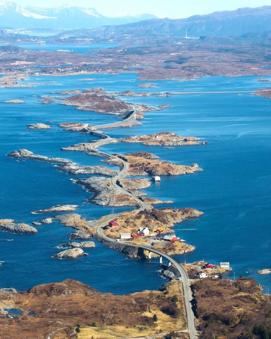 Photo: ins@visitnorwaytravelnorge/@perkvalvik大西洋公路是全球风景最引人入胜的公路之一,8座桥梁横跨在大西洋峡湾的洋面上,连接着诸多小岛。这里也是挪威峡湾公路的代表,通常作为游览挪威西南部峡湾的行程起点或终点。