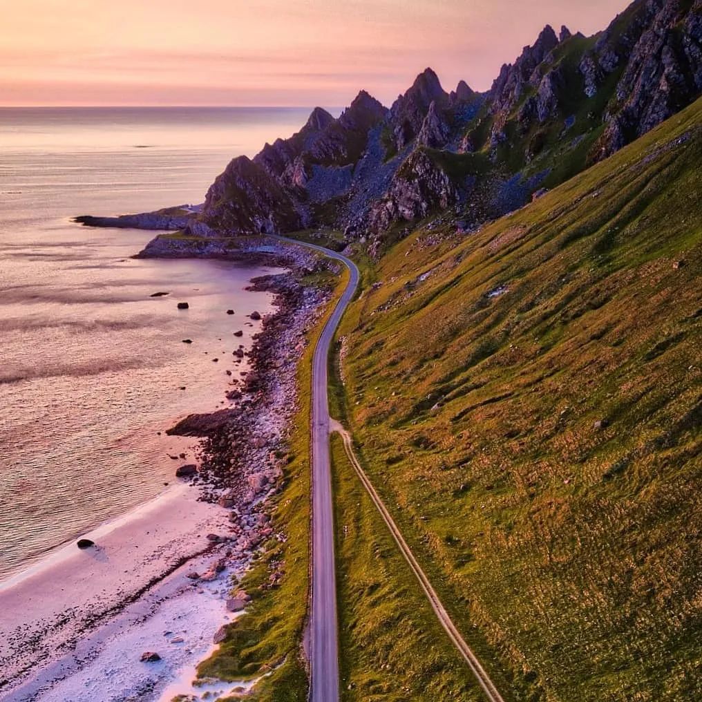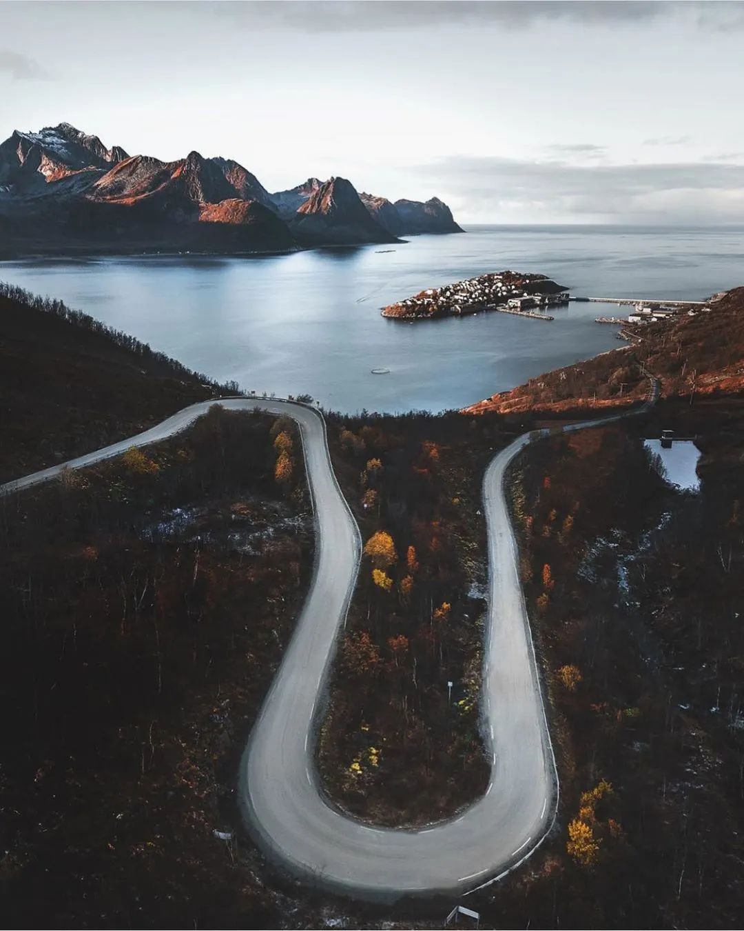 Photo: ins@visitsenjaregion/@trulsfromnorway狭窄的塞尼亚公路沿着山势蜿蜒曲折,让你有足够的机会亲近大海。