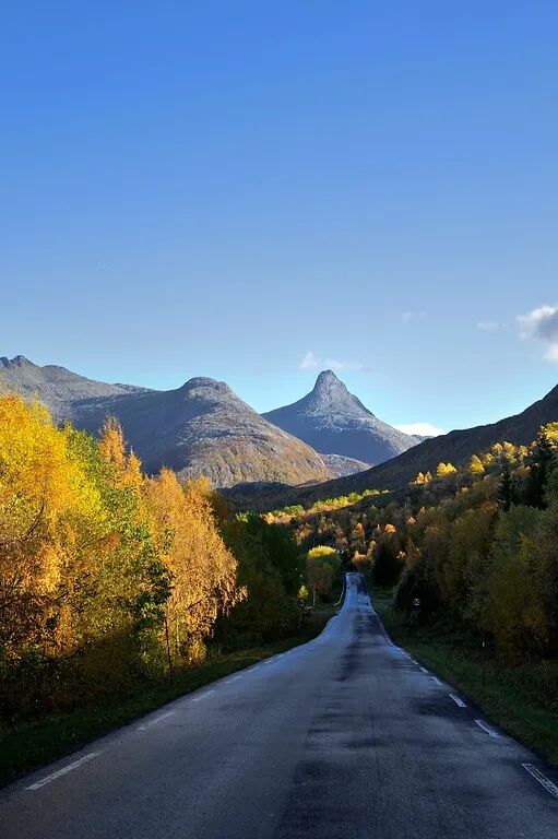 Photo: norwegianscenicroutes这条线路的起终点分别在Holm和Godøystraumen,主要途经17号公路,中间去Torghatten的分岔路主要途经76/54号公路,在Vennesund和Holm,Horn和Anddalsvåg,Tjøtta和Forvik,Levang和Nesna,Jektvik和Kilboghamn以及Forøy和Ågskardet之间有6段轮渡,全程433公里,最高海拔346米。