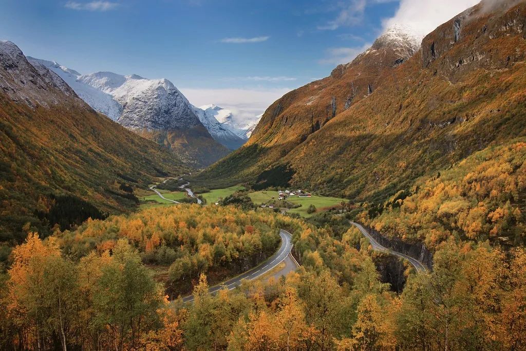 Photo: Jarle Wæhler, Statens vegvesen这条穿越斯特林山脉(Stryn Mountains)的旧公路竣工于1884年,这条27公里长的公路本身就是景点,尤其是在深秋时节,丰富的色彩让层林尽染,置身其中,你会因大自然的大胆配色而深感震撼。