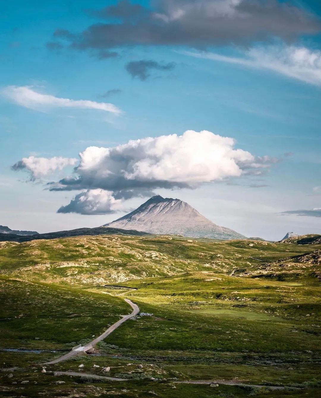 Photo:ins@hknphoto这条山区公路穿过一片广袤的高原,是去往北方的备选路线,还可以看到拥有29座挪威最高山峰的尤通黑门山区(Jotunheimen)。如果你的行程安排在夏季,还可以去山区里的高原农场逛逛。