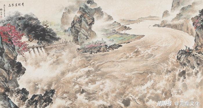 1960年 黄河清 傅抱石 51.2x76cm 纸本水墨设色 中国美术馆藏