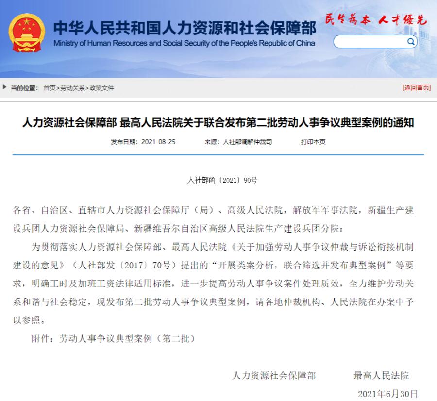 在通知附件《劳动人事争议典型案例(第二批)》中案例一便是一起因“996”工作制引发的劳动仲裁案件