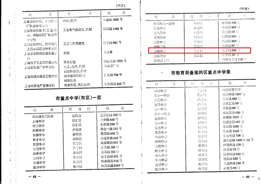 《上海指南》(1980年版)列出的市重点中学一览表,其中包括南模中学