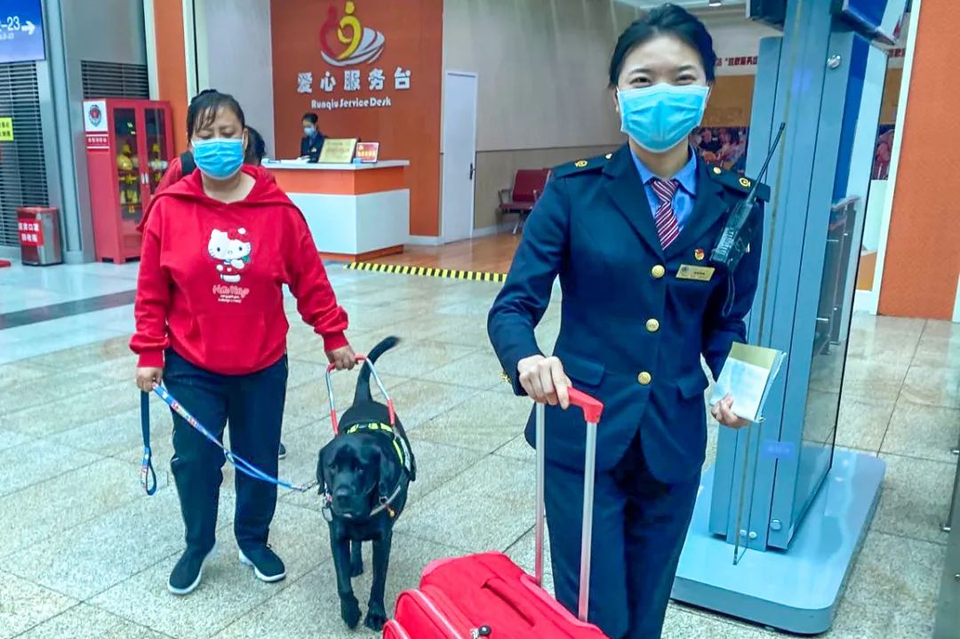 视力残疾旅客可以携带导盲犬进站,在进站、乘车时,请主动出示以下证件:购票时所使用的有效身份证件、残疾证、导盲犬工作证和动物健康免疫证明。