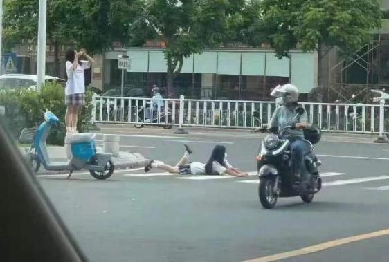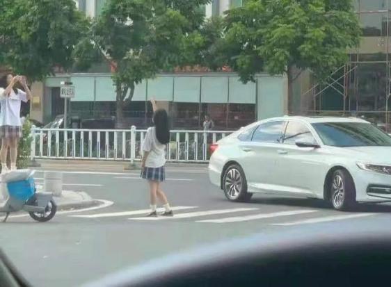 经调查,俩女孩年纪为12-13周岁,之所以想到在斑马线上拍摄,是因为在某短视频平台上看到网红博主在马路上拍摄的照片十分好看,便想模仿。于是在8月16日下午,她们结伴来到河源市文化广场体育馆路口的斑马线处进行拍摄。