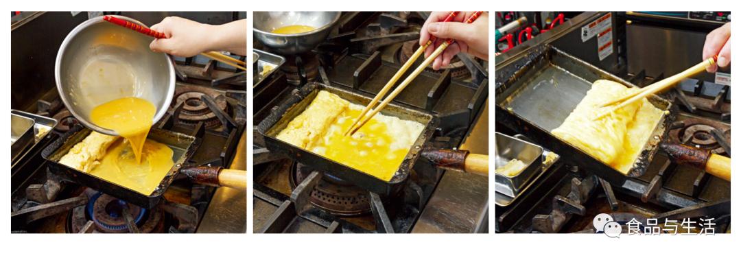 制作“厚蛋烧”的锅具其实不一定非要用方形,也可使用圆形的不粘锅,煎饼卷好后裁边就会美观。不过,日本人讲究专物专用,方便制作“厚蛋烧” 的长方形锅具在日本受众很广。