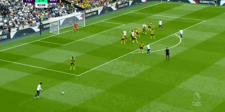 第42分钟,孙兴慜左路任意球破门——他10次英超对阵沃特福德以来已经打入6球,但这是他热刺生涯首次任意球得分。而热刺上一次有球员在英超定位球直接破门,还要追溯到2019年12月的埃里克森。