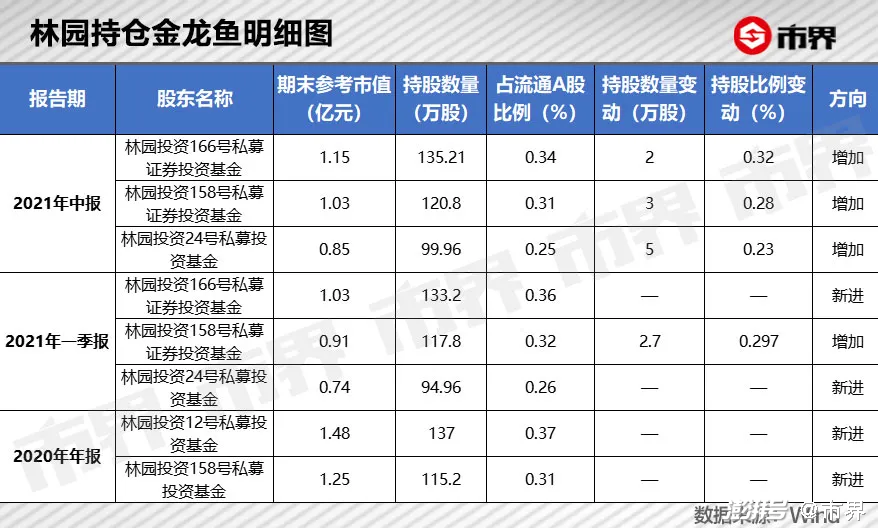 2020年金龙鱼刚上市,林园旗下基金便进入了金龙鱼,今年二季度,林园再次加仓。