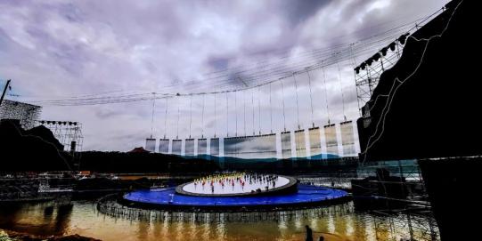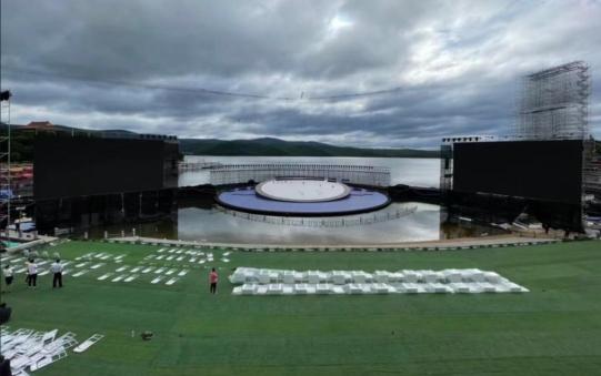 在中国最大玄武岩火山堰塞湖——镜泊湖中搭建舞台