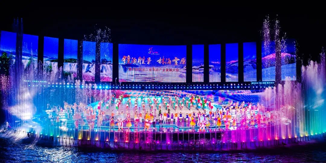 现场还设置7台激光设备配合舞蹈、投影、喷泉使用