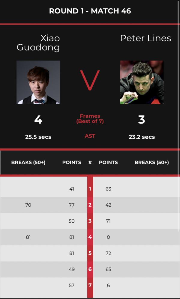 此前在2021斯诺克北爱尔兰公开赛中,肖国栋绝杀彼得·莱恩斯晋级正赛,赛后莱恩斯不满,并到球员休息室对肖国栋进行言语攻击和挑衅。