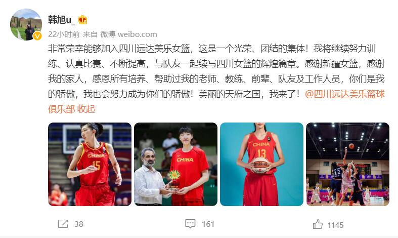 30日,WCBA四川远达美乐女篮官宣,球队正式签约韩旭和吴迪。两位国手的加盟,给四川女篮在阵容上又带来了增强。