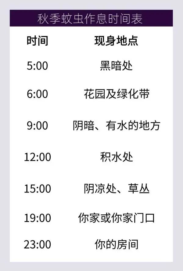 这一份《秋季蚊虫作息表》