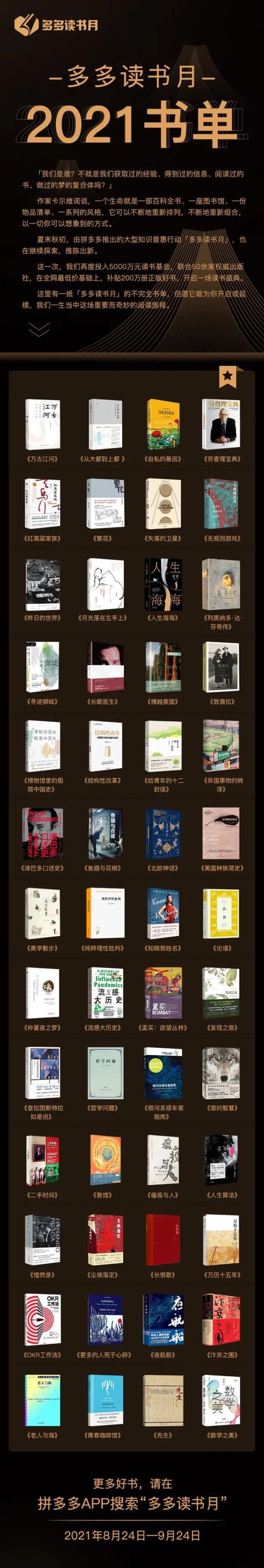 为普惠读者,拼多多于8月24日至9月24日,开展了“多多读书月”的第二季活动。