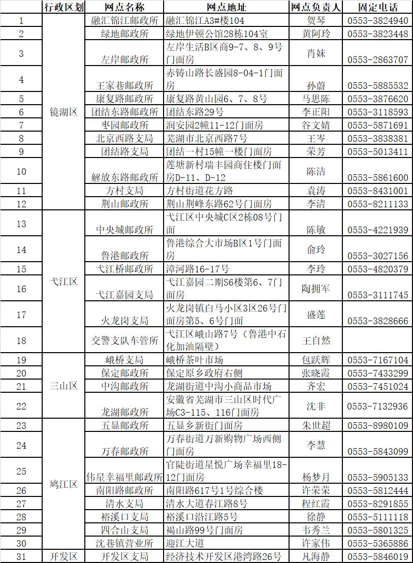 五、上牌网点:集中登记上牌期,将依托市区邮政网点,设置电动车集中登记上牌服务网点(网点附后)。因疫情防控工作需要,鼓励群众线上申请,邮寄号牌。