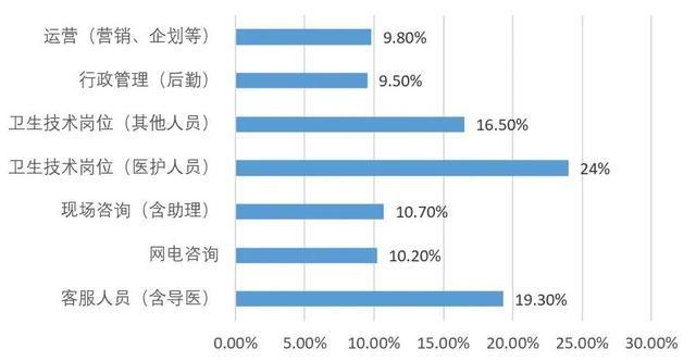 医美机构岗位人员占比“医美行业起码还有十年的黄金期,从中衍生出来的现在都算得上是高薪职业,而医美咨询师不像医美医生和护士,需要很强的专业技术能力,它几乎没有入行门槛,所以就成了大家的首选。”从事医美咨询培训多年的万奇告诉锌刻度,医美咨询师在一线城市的月薪最高能到六万元,在二三线城市月薪普遍也能达到一万五千元左右。