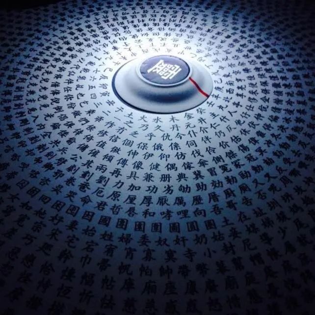 一些细节已经记不清了。按照情理,那天晚上应该是个月朗星稀的氛围,同样我们似乎也按照情理先喝了一茬酒,再在子时开始了正事。道具是事先备好的、一米见方的字盘,密密麻麻的汉字以同心圆的形式印开。以及一个略带古风的扁碟子,背面画了条红线做指针(如下图所示)。四人分座字盘的四个边沿,用食指抵住倒扣的碟子。