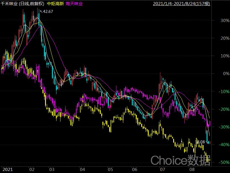 距离牛年春节的喧嚣仅仅过去了半年,A股曾经的调味品三巨头海天味业(SH:603288),中炬高新(SH:600872),千禾味业(SH:603027),市值已经回撤了至少50%。