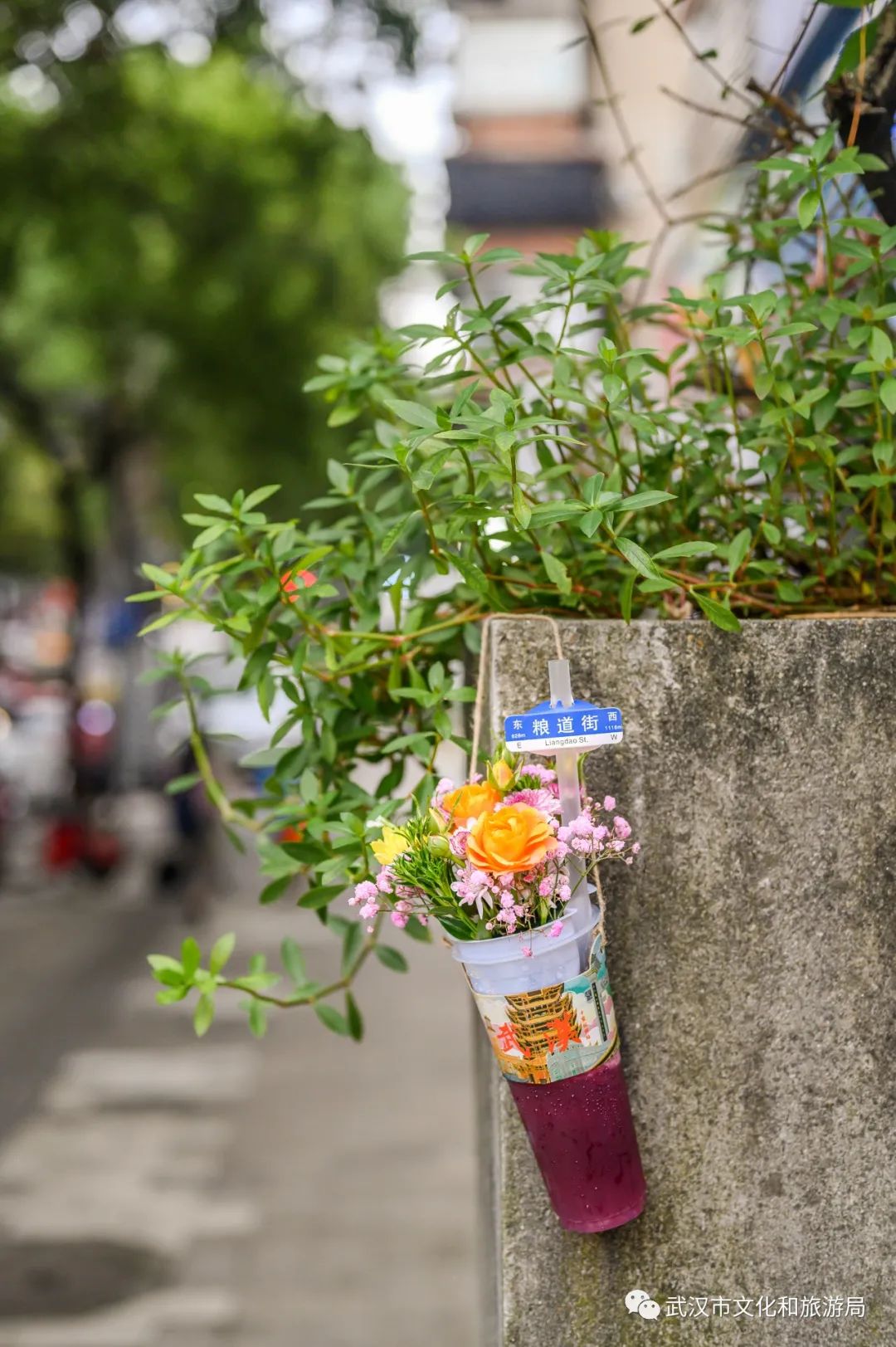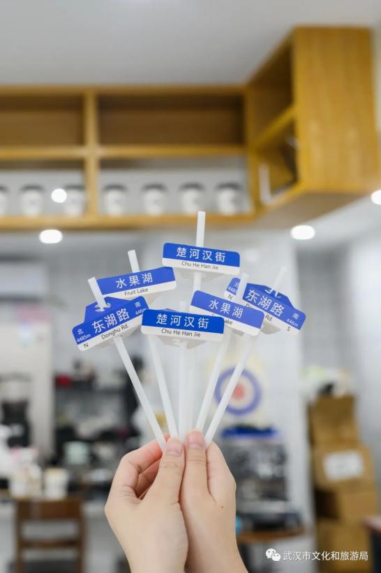 武汉这股“路牌咖啡”的风潮,是粮道街的「本周咖啡」带起来的。去年8月,老板去其他城市旅行,将咖啡杯上插路牌的形式带回武汉。一开始,只做了100个“粮道街”路牌试水,却迅速在小红书上火出圈,成为#武汉首家路牌咖啡#。