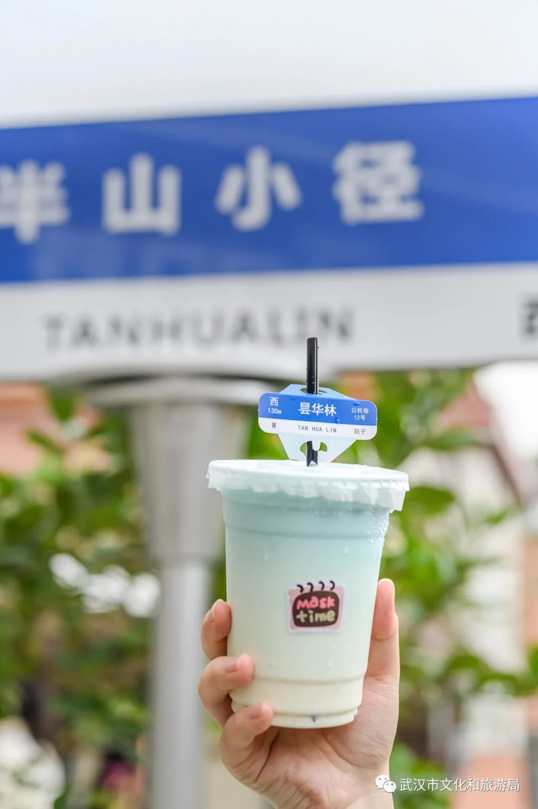奶茶杯挂上“昙华林”路牌,店主乐意让客人带去昙华林街上打卡,让更多人熟悉这条街。但昙华林路牌距离小店有1km,走过去有些累脚。不如爬上改造过的昙华林二期,在“半山小径”路牌前来张合影。
