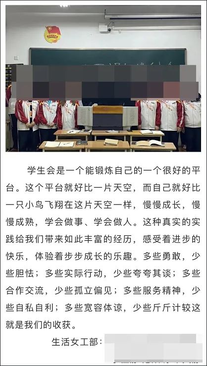 官方资料显示,黑龙江职业学院是经黑龙江省人民政府批准、教育部备案的全日制普通高等院校,是黑龙江省示范性高职学院。今年4月,该校工商管理学院一微信公众号曾发布了一篇《我和工管学生会的故事》,其中就有前述几名学生会干部的故事,她们称,“学生会是一个能锻炼自己的一个很好的平台。这个平台就好比一片天空,而自己就好比一只小鸟飞翔在这片天空一样,慢慢成长,慢慢成熟,学会做事、学会做人。”在这里,“多些宽容体谅,少些斤斤计较这就是我们的收获。”
