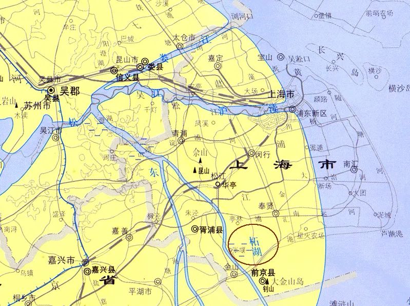 《上海历史地图集》中标注的柘湖位置(公元546年)上海人民出版社 1999年,周振鹤 编著