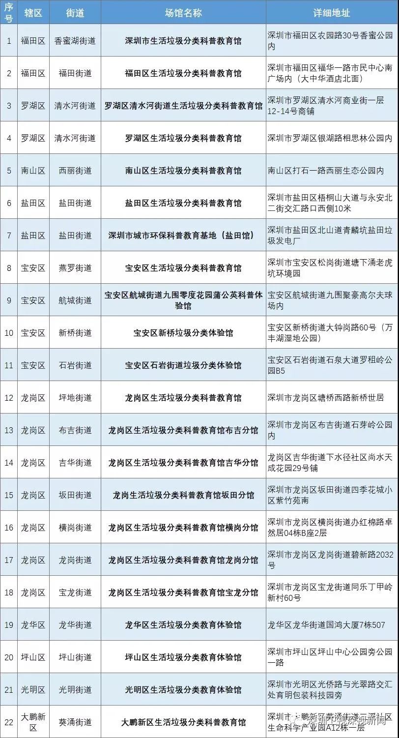深圳市福田区园岭街道长城社区党委书记宋明阳在接受采访时表示,社区通过“垃圾分类知识进校园”,让孩子从小养成垃圾分类的习惯,回家以后督促家长落实垃圾分类。此外,社区还定期有网格员到各垃圾分类收集点查看督导员的工作。全市已建成22个垃圾分类科普教育馆