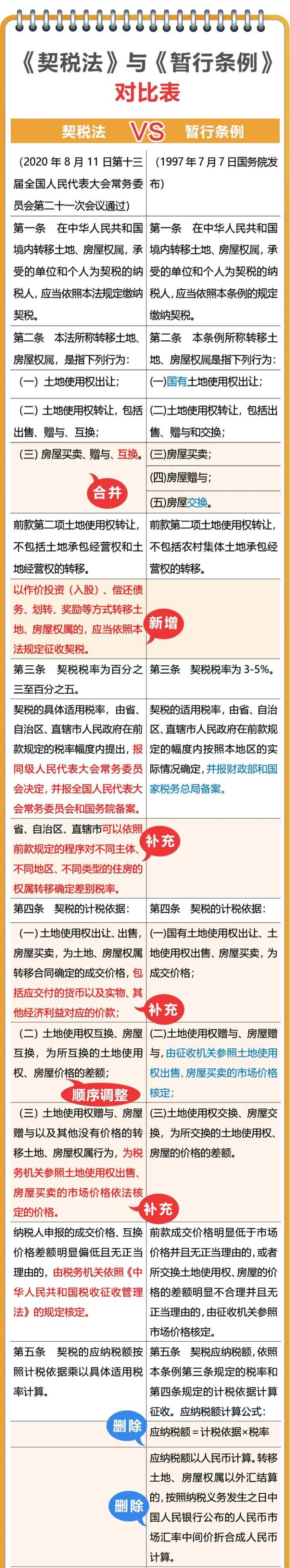 《中华人民共和国契税法》(以下简称“《契税法》”)自2021年9月1日起施行,《中华人民共和国契税暂行条例》(以下简称“《暂行条例》”)同时废止。契税的税率是否真的提高了?《契税法》与《暂行条例》相比,哪些规定变了,哪些没变?别着急,我们已帮你整理好了↓↓↓