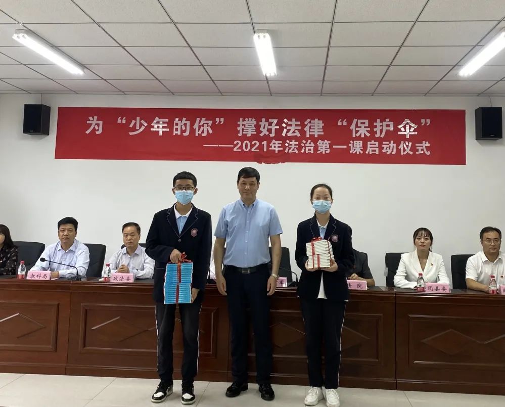 上午9点,“法治第一课”启动仪式在周至七中正式举行。周至法院党组书记、院长李希军出席活动并讲话,随后代表法院向学校赠送了法治教材,周至七中校长庞思晨为周至法院青年干警罗颖颁发法治副校长聘书。县法院、县政法委、县教科局、县妇联、团县委等相关部门领导出席活动。