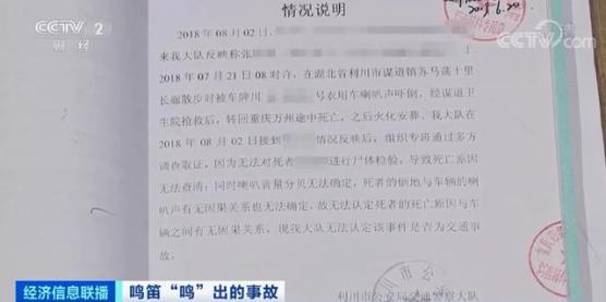 但事发后,当地交警部门并没有出具事故责任认定书,只出具了一个情况说明:无法确定喇叭音量分贝,老人的倒地与车辆的喇叭声有无因果关系也无法确定。