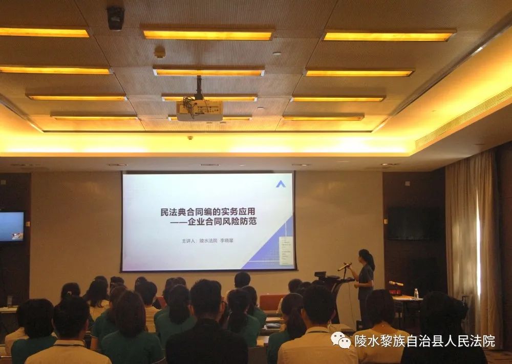 为进一步优化法治营商环境,提升企业风险防范意识,推动企业持续健康发展,8月31日上午,陵水法院深入民营企业海南雅居乐房地产开发有限公司开展“民法典宣讲进企业”活动。民庭法官助理李晓星为公司员工送去一堂“量身定制”的民法典课程,公司员工50余人参与讲座。