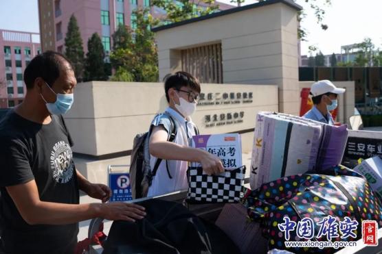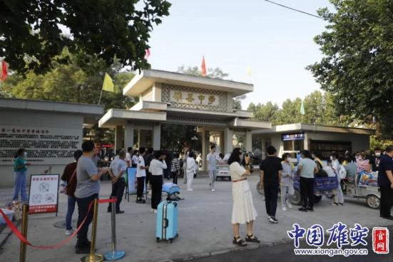 图为雄安新区雄县第一高级中学学生返校现场。中国雄安官网毛鹤然 摄“凌晨五点多就有学生开始返校了。”雄县第一高级中学校长高哲峰介绍,雄安新区雄县第一高级中学于8月31日下午5点进行了最后一次学生返校服务演练,并要求校领导班子成员和参与学生返校服务的老师于今天凌晨4点半在校门口集合,准备迎接学生返校。